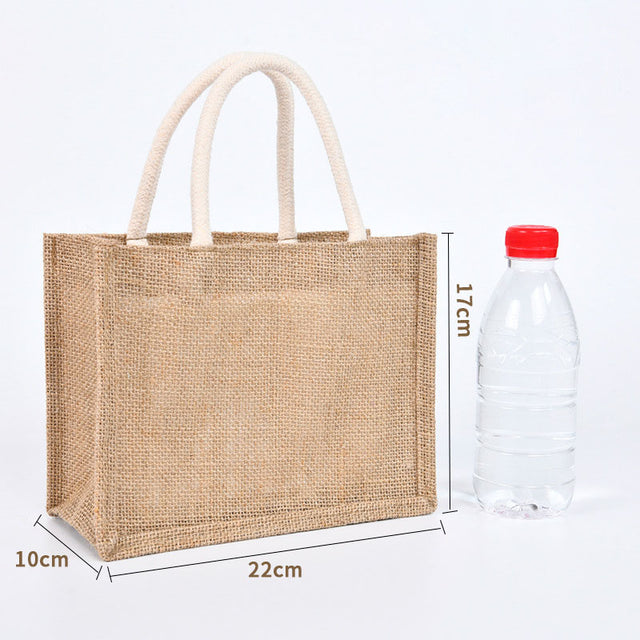 Our burlap tote bag is made of natural jute (burlap). Our jute handbag has a natural texture, is reusable, sturdy, and easy to take care of. Reusable bags are an Eco essential.
