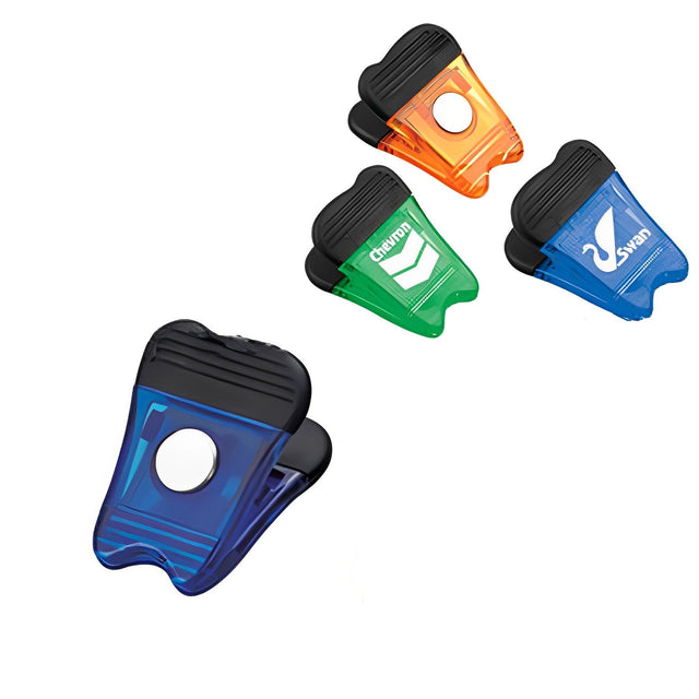 Clip magnético con forma de diente. Fabricado en plástico de alta calidad. Ideal para sujetar notas en el refrigerador, archivador, tablero del auto, taquilla, etc. Es un excelente artículo promocional para la escuela, el hogar y la oficina.