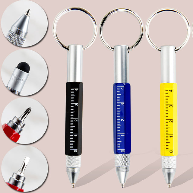 Notre stylo possède six fonctions différentes : stylo à bille, règle, tête de condensateur, tournevis (tournevis cruciforme et tournevis à un seul mot) ou stylo.