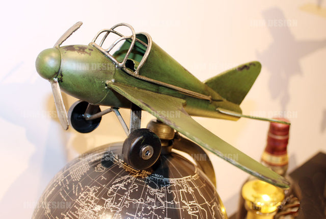 Cette décoration rétro nostalgique de style industriel, combinant de manière très créative un globe terrestre et un avion volant au-dessus de la Terre, est très personnelle. Elle convient parfaitement à un salon, un café, un bar, une discothèque, une boutique de vêtements ou tout autre lieu commercial.