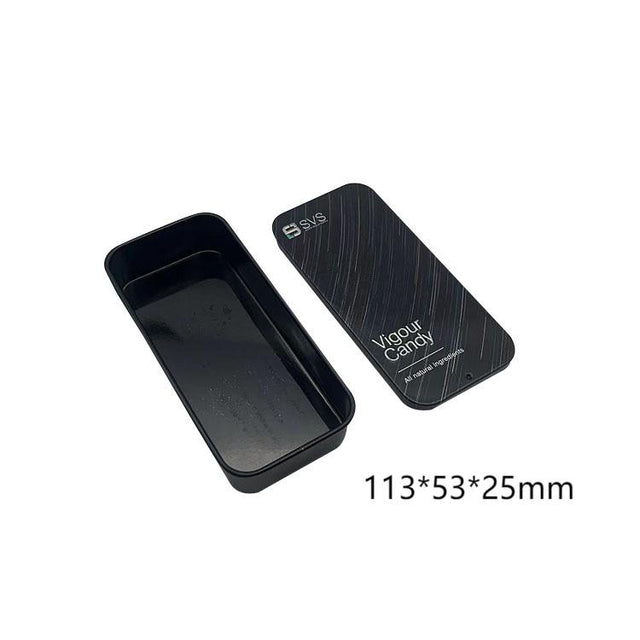 Empty small tins in black finish with rounded smooth edges. Slide top lid design tin box containers are perfect for storing and organizing lip balm, candies, mints, beads, and more! The slide top lids can be sealed easily and securely, which prevents the contents from spilling over.