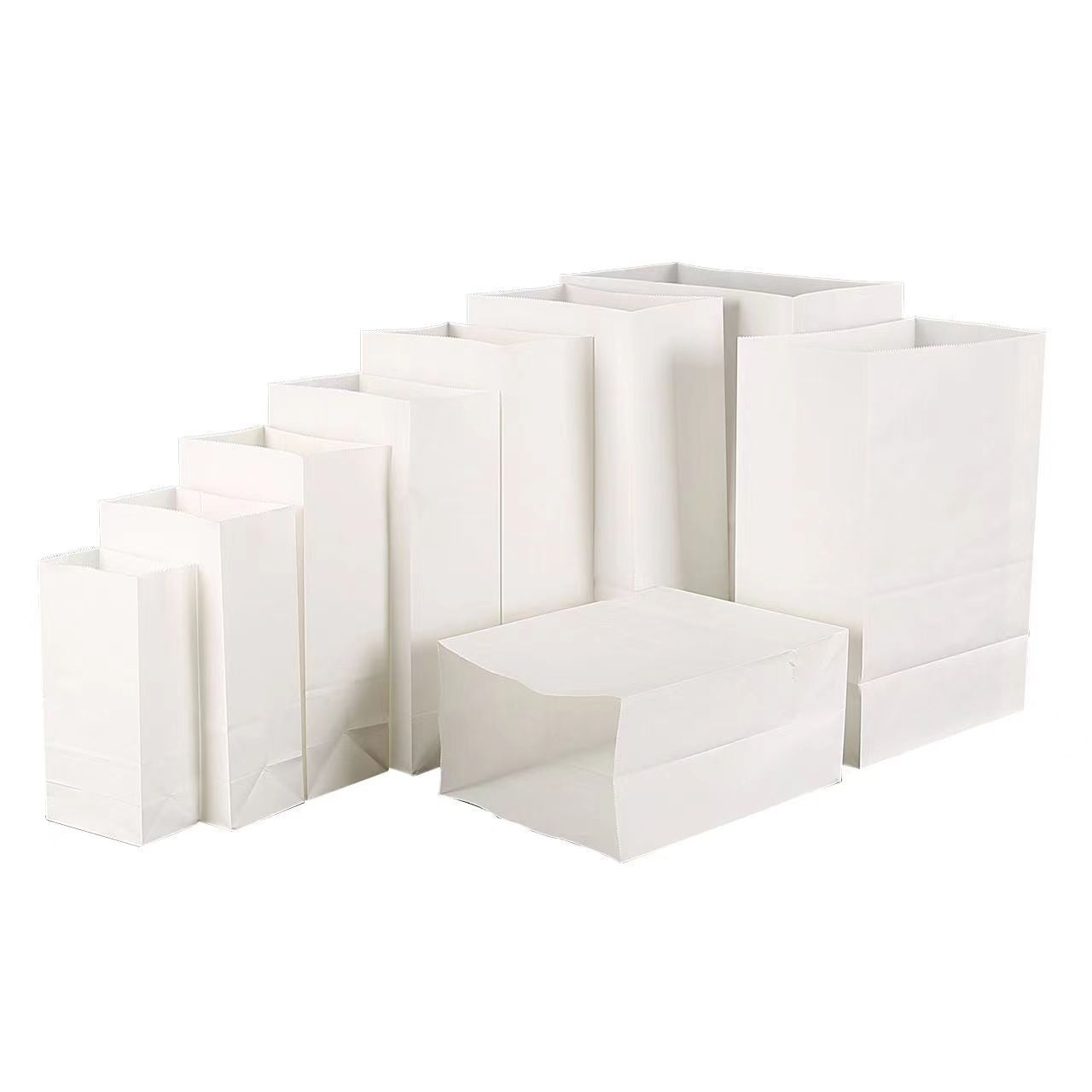 these white kraft paper bread bags are perfect for storing and showcasing your baked goods. Made from high-quality kraft paper, they are durable, eco-friendly, and provide excellent protection to keep bread fresh. The clean white color gives a simple and elegant look, suitable for various types of bread, pastries, and other snacks. Available in multiple sizes to meet different packaging needs, they are ideal for bakeries, cafes, or home use.